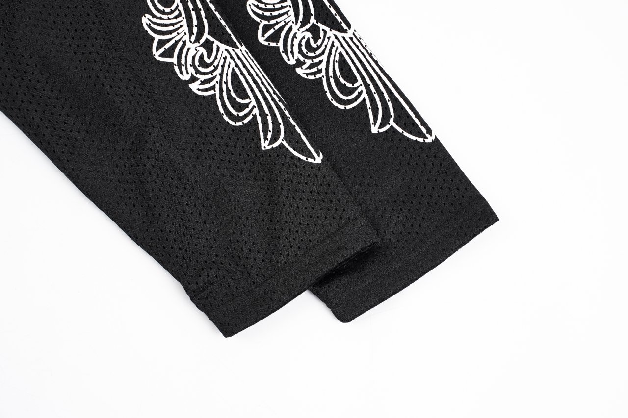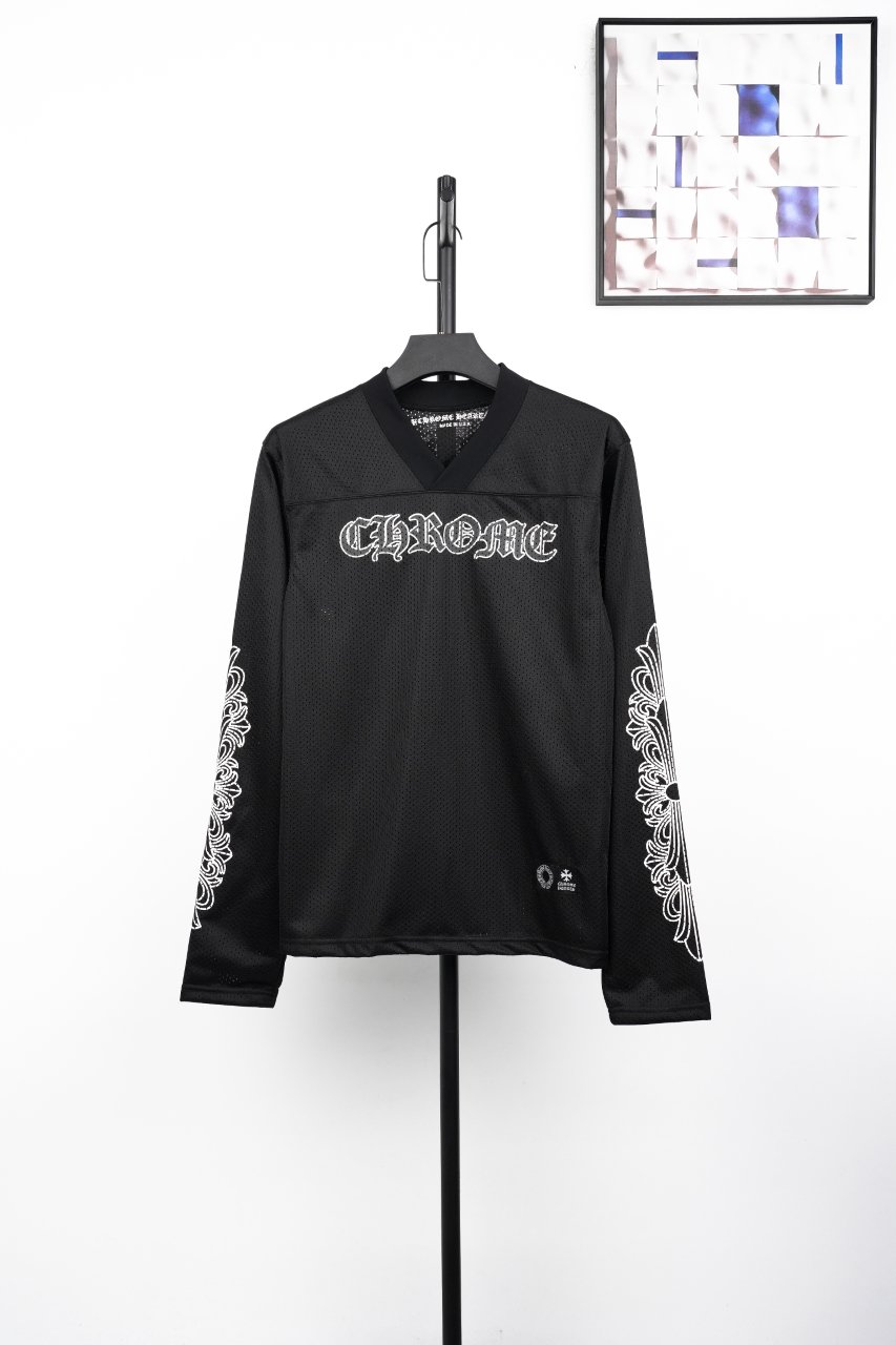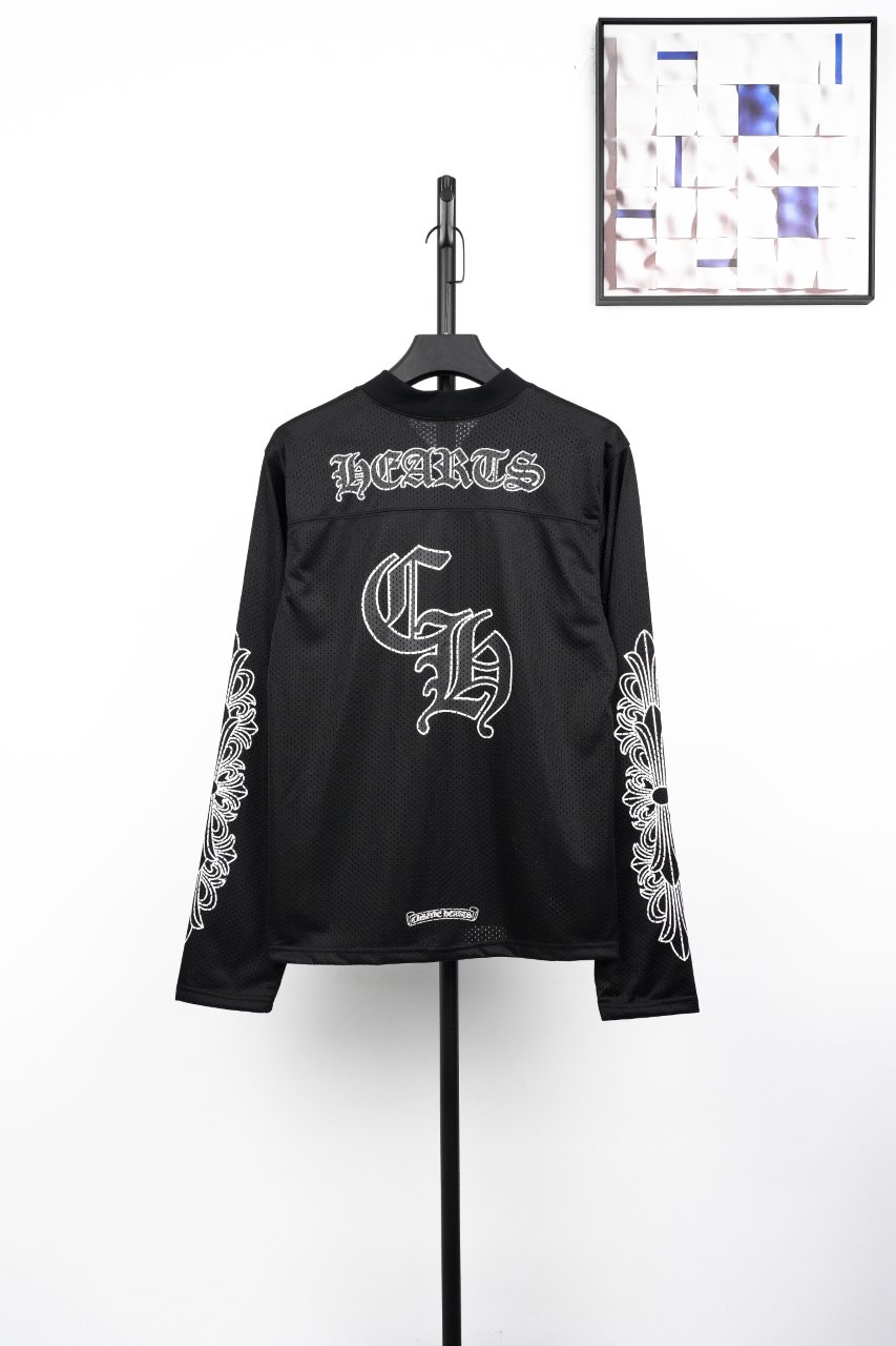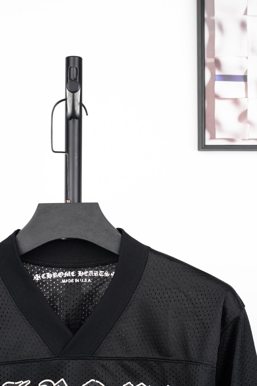 The jersey features signature Chrome Hearts graphics printed using hand-scraped plastisol screen printing.